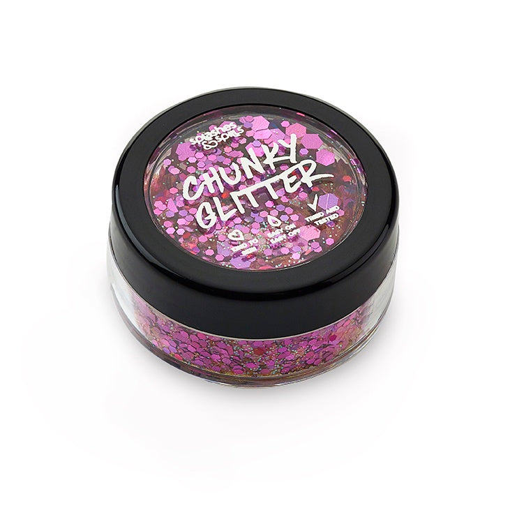 Our diverse range of vibrant coloured Holographic chunky glitter products can fit every look and whim of the creator. Plus, as it is as easy to take off as it is to put on, you’ll be able to experiment with our glitters and create awe-inspiring looks constantly. From deep purple to shimmering silver Holographic chunky glitter, there are plenty of possibilities available for you to test out. Our products can be used repeatedly too as our kind-to-skin formula ensures our users won’t suffer from any irritation or inflammation. Our holographic chunky glitter can be used by everyone, so grab some vibrant glitters and start creating!